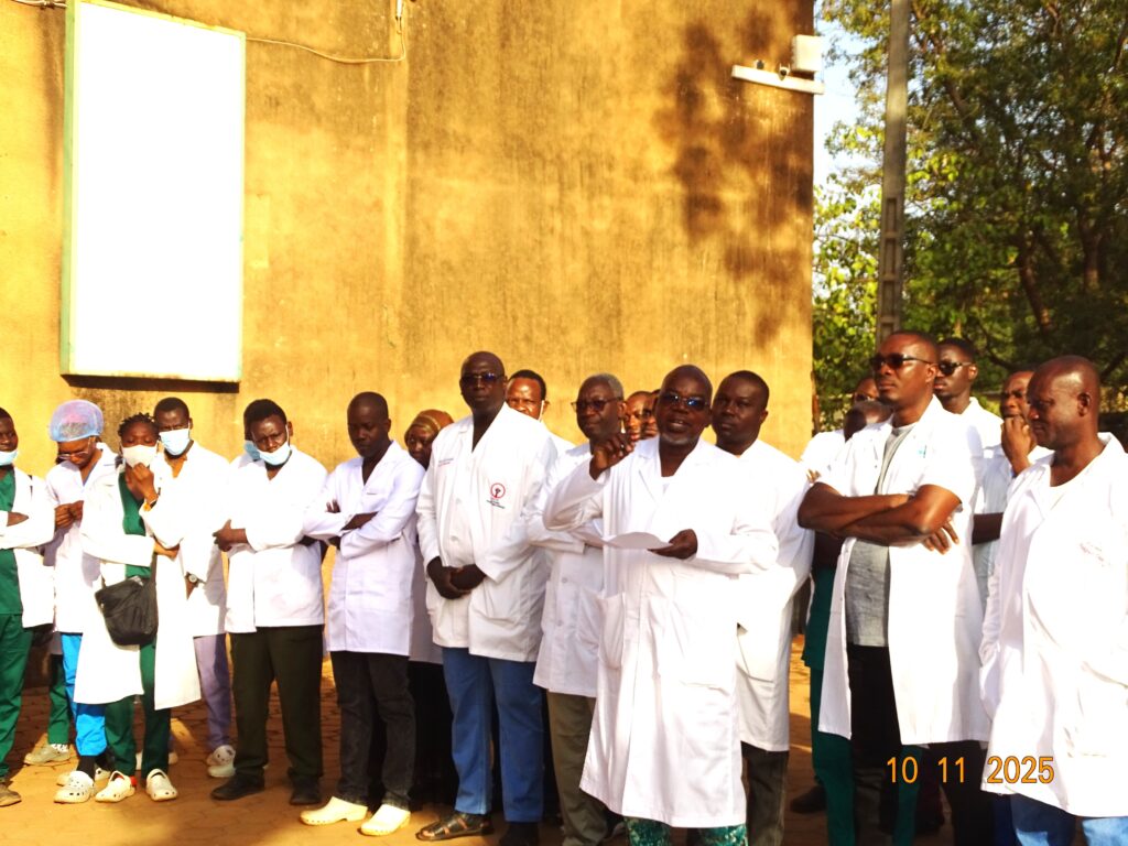 (Ouagadougou, le lundi 10 novembre 2025/CHU-YO) Les travailleurs du service de traumatologie-orthopédie conduits par le Professeur Mamoudou Sawadogo ont assuré ce jour la traditionnelle cérémonie de montée des couleurs nationales. Le chef de service, dans sa prise de parole a exprimé sa fierté et reconnaissance.
